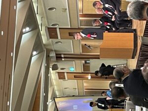 まずは八幡駅に集合。今日はとにかく暑いです。 貸し切りバスに乗り、いざ八幡高校へ。懐かしい槻田橋の三叉路を左へ。今は三車線になっています。 まずは同窓会館へ集合し、神谷校長の解説による学校見学です。「机ってこんな小さかっ […]